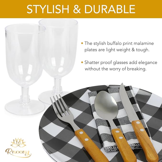 • Picnic basket with blanket is perfect for enjoying a picnic with 4 persons offers high-quality accessories with 4* Glasses, 4* Plates, 4* Forks/ knives/ Spoons, 4* Napkins Clothes, 2* Pepper Shakers, 1* Chopping Board, 1* Cheese knife, 1* Bottle-Opener, 1* Blanket