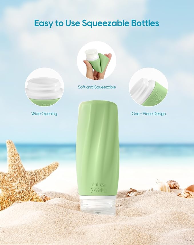 • 【Safe Silicone & Squeezable Material】 Our silicone travel bottles are made of food-grade silicone that making it safe for other liquids like sauce, salad dressing or even baby food. Moreover, these travel shampoo bottles are soft to use, flexible to carry around. It can make you squeeze out contents easily.