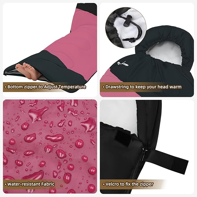 • 【Comfortable Designs】Unzip the bottom zip so you can stretch out your feet in warm weather. Fully unzip and open the sleeping bag, and it becomes a blanket, a quilt or a soft mattress. Head drawstring allow you tighten the half-circle hood and keep you head warm.