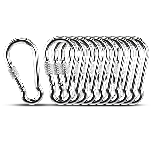 • 【PRODUCT SPECIFICATIONS】 - Our product package includes 10pcs of 1.97" locking carabiner. We sell other stainless steel locking carabiner in sizes from M5-M14. You can choose the products you want according to your needs! Wish you happy shopping!