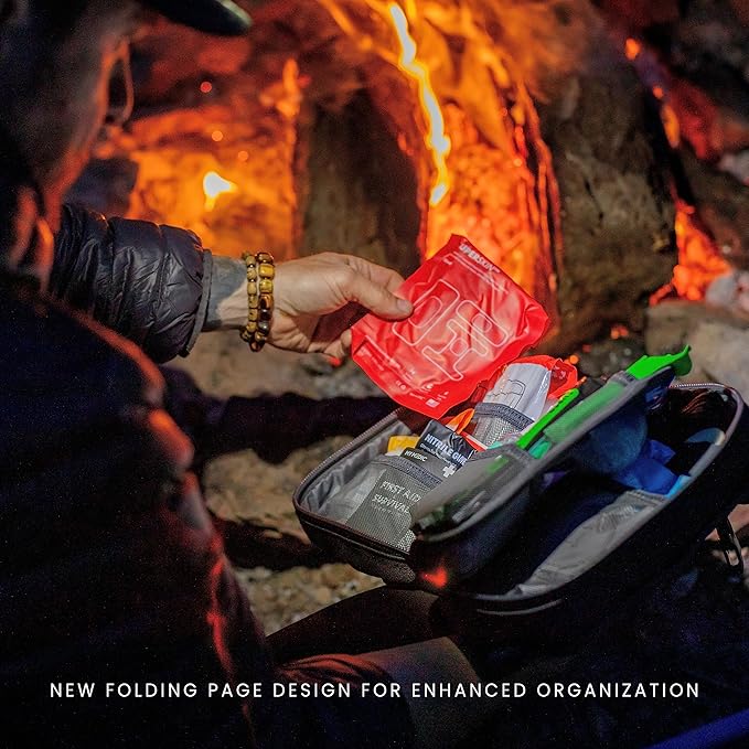 • COMPACT SURVIVAL KIT -This small first aid kit, equipped with over 45+ life-saving supplies, is a camping essential for both minor and severe injuries. Ensure you have the necessary camping supplies with our first aid kit for camping.