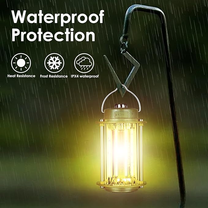 • 💡【Waterproof and Drop Resistant】Camping lantern rechargeable IPX4 waterproof can withstand splashing rainwater in all directions, constructed with military grade ABS material, impact-resistant rubber top and bottom ends provide full protection from dropping.Camp lights support bracket also won't slide/fall itself easily on slippery, uneven surfaces.