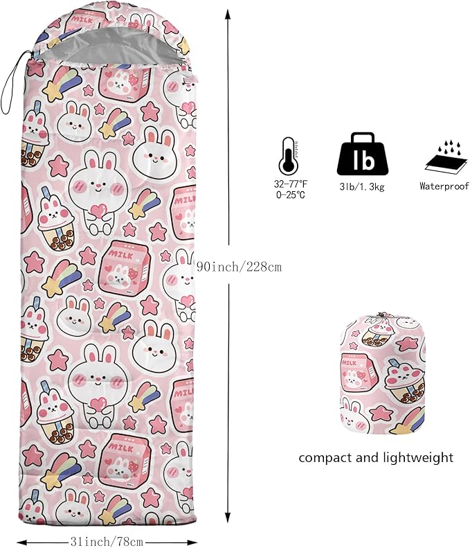 • 【Fits For 3 Seasons】: Size - 31 by 90 inches (W x D). Our sleeping bag can be used in 3 seasons with a design temperature of 32℉-77℉(0℃-28℃). These bags also have a weather resistant waterproof design to keep you warm and prevent you from any dampness.
