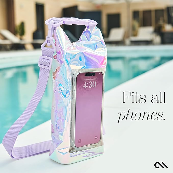 • Stylish Protection with 1-Year Coverage: Explore Case-Mate's chic & protective Water Bag for Phone — blending luxurious design with enhanced durability since 2005! The Casemate beach bag set keeps your essentials dry with its waterproof sling bag in an Iridescent finish, featuring a built-in waterproof pouch for swimming, along with a detachable fuchsia keychain lanyard. Enjoy worry-free adventures with our 2L dry bag, backed by a 1-year warranty.