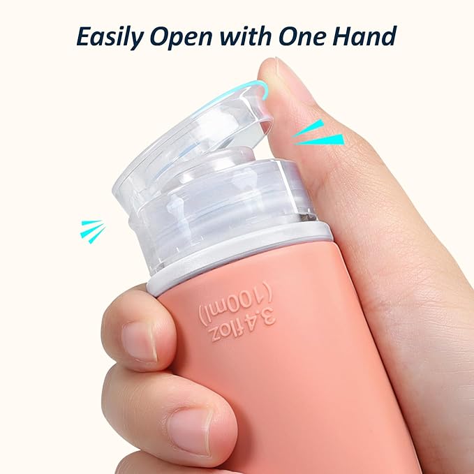 • Easy to Use: Unlike other bottles, our travel shampoo bottles can stand upright and upside down, plus their wide mouth opening, filling and cleaning become very simple. Moreover, with a curved design on the edge of the bottle cap, you can easily open it with one hand, and the soft silicone material makes it easy to squeeze