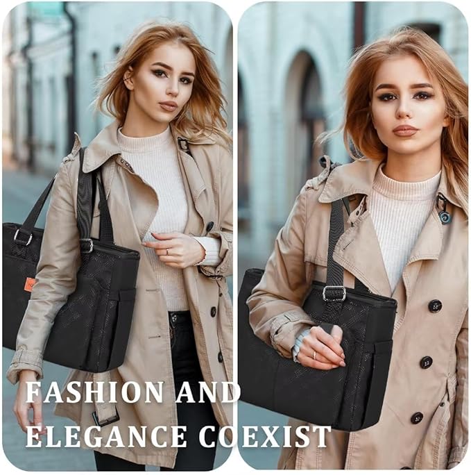 Large Women Lunch Bags for Work/Insulated Cooler Lunch Box with Side Pockets, 14L Capacity, Black