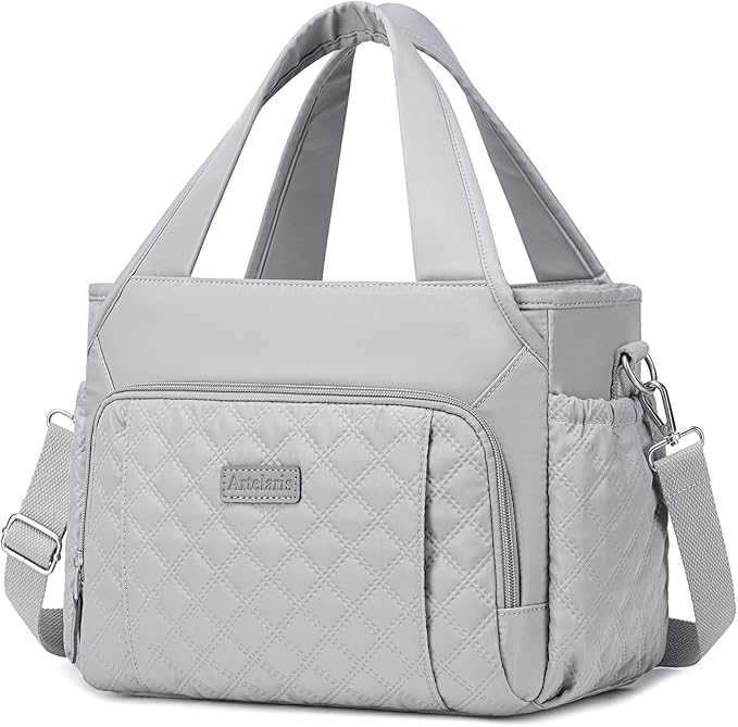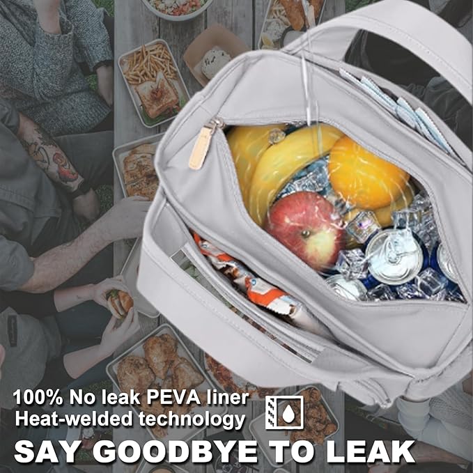 Artelaris Lunch Bag for Women, Insulated Lunch Box for Work, Large Leakproof Cooler Purse with Side Pockets & Removable Shoulder Strap Women's Lunch Tote Bag for Picnic Beach Cute Lunch Bags (Gray)