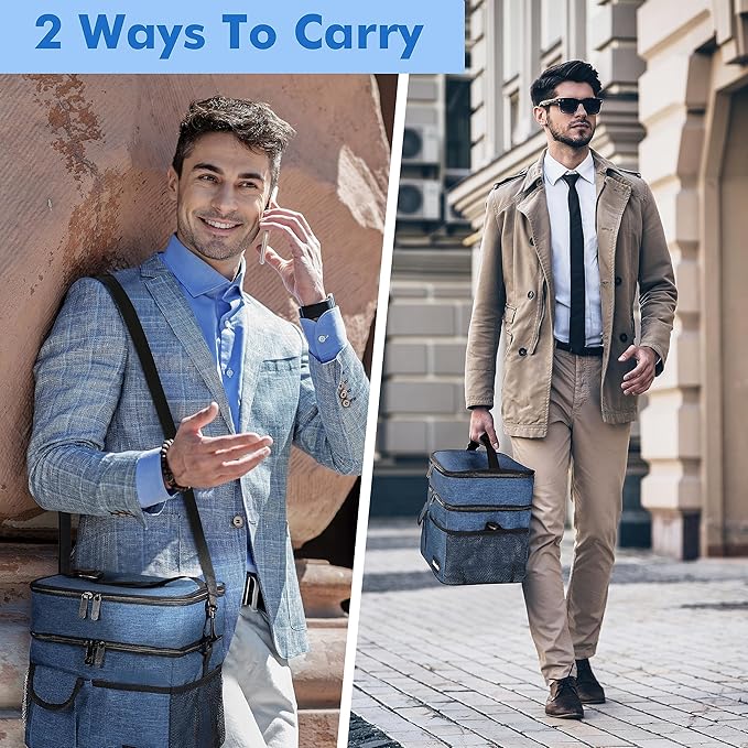 • Convenient Design-Lunch bag features an adjustable shoulder strap for easy carrying, whether you're headed to work or the gym. The double zipper design allows for quick access, while multiple pockets—including 4 additional compartments and 2 side mesh pockets—make it easy to store personal items. This lunch bag for women is both functional and stylish.