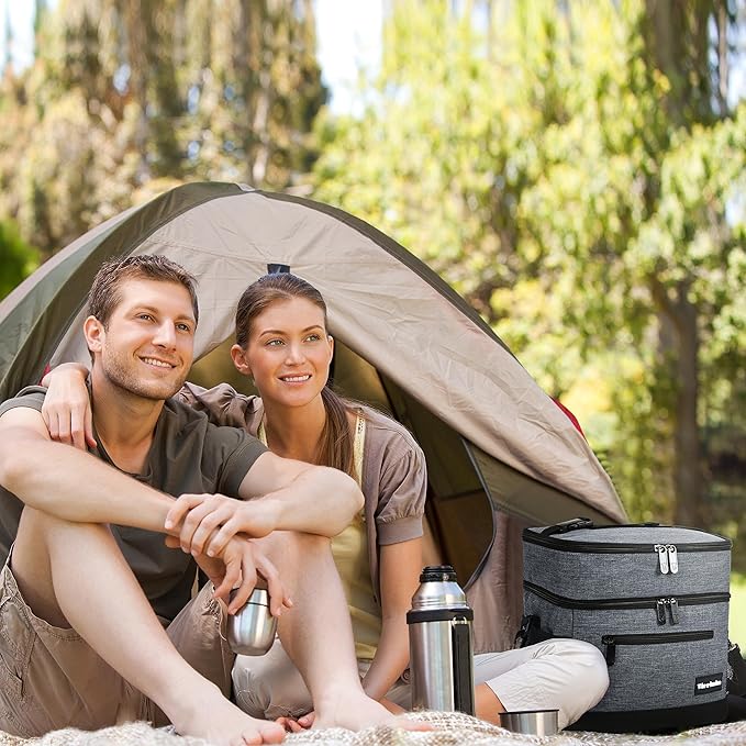 • Portable Design - It comes with adjustable and detachable shoulder straps and a comfortable handle, allowing you to conveniently take this lunch bag to camping or the gym. The dual zipper design makes it easy to access your food.
