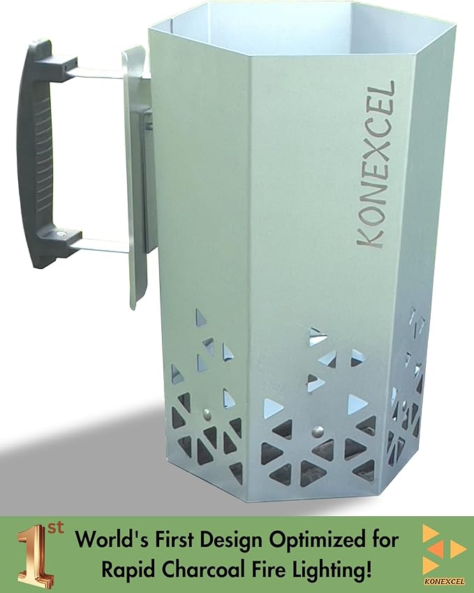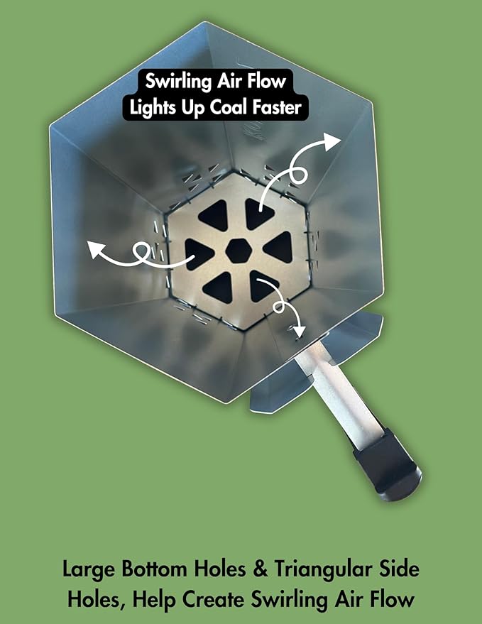 • INNOVATIVE HEXAGONAL DESIGN: This charcoal starter chimney adorns a unique hexagonal shape for efficient heating and maintaining optimum temperature, ensuring your grill is always ready for those juicy steaks.