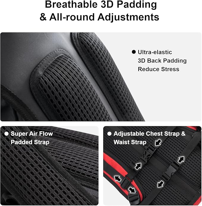 • HIKING/CYCLING/RUNNING/SKIING WITH EASE: This 2 lbs lightweight water backpack features an ultra-elastic 3D breathable padded back, adjustable chest and waist straps to provide comfort and stability for all body sizes. This day pack has got you covered for all your adventures.
