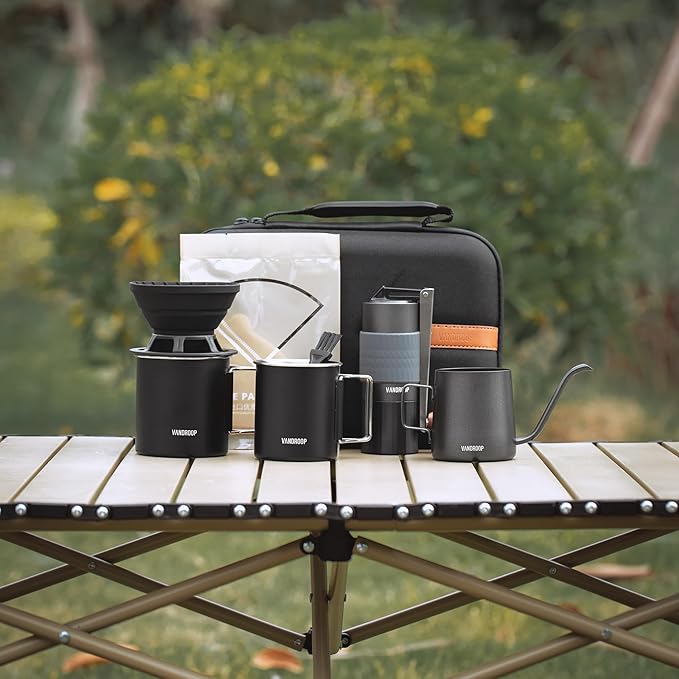 • Portable and Space-saving: The collapsible silicone coffee dripper and stackable stainless steel cups make it incredibly easy to pack and carry, while the included storage box keeps everything organized and protected. It is compact, lightweight, making it perfect for travel, camping, or enjoying a cup of coffee on the go