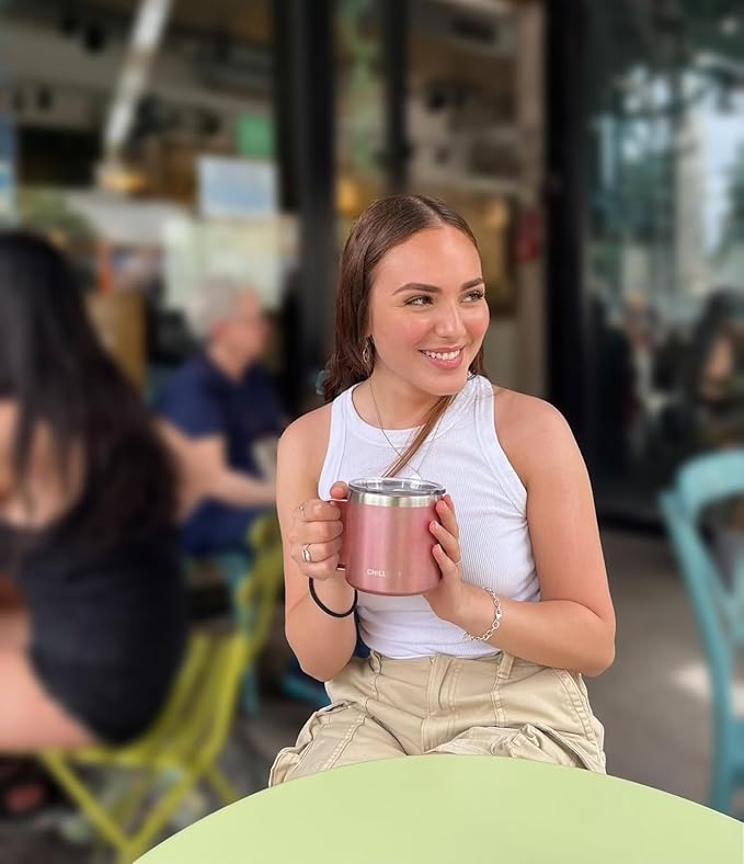 • Always With You - The CHILLOUT LIFE thermal coffee mug with handle is made of premium 18/8 food grade stainless steel for a 100% durable unbreakable coffee mug. Electro polished on the inside, the cups stay 100% rust free. The outside of each mug have a great feel & looks incredibly chic. Easy clean - it’s wonderfully convenient to use at home or on the go instead of ceramic or enamel mugs.