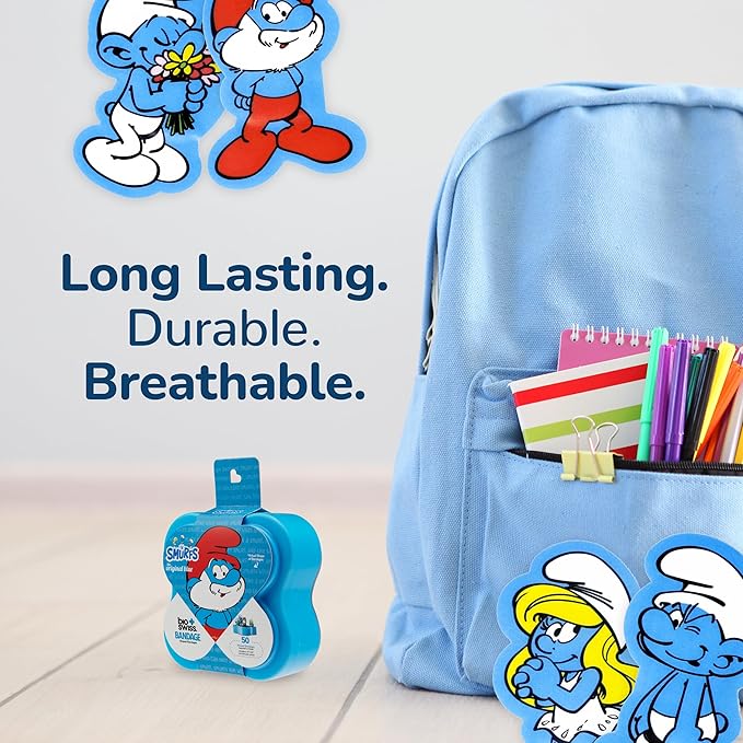 • EASY TO CARRY AND USE: These cute and colorful Smurfs children's bandages are easy to take with you for travel, and easy to store in a home first aid kit; these healing bandages are perfect for school, summer camp, camping trips, weekend getaways and more