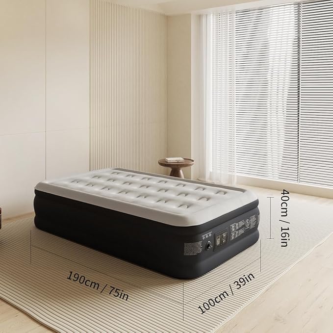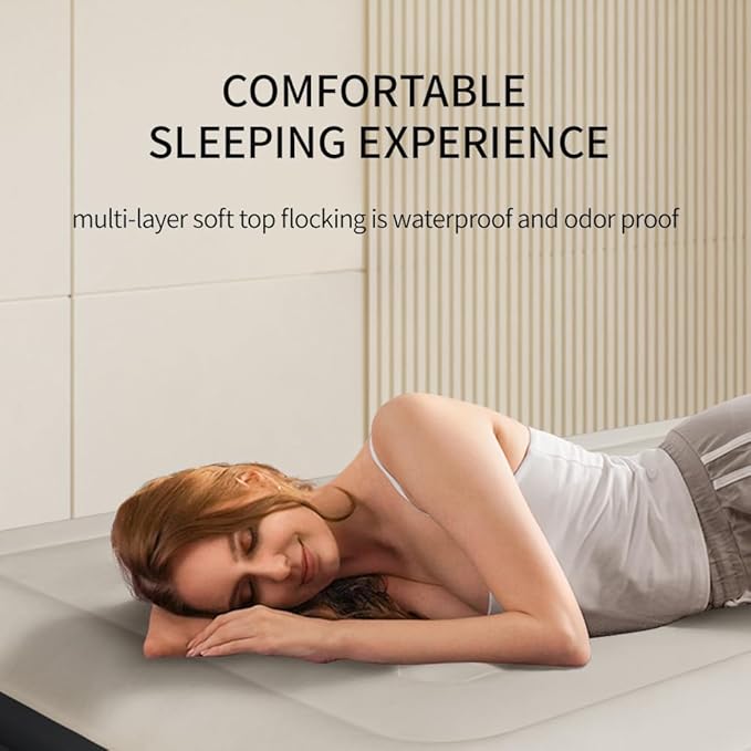 • COMFORTABLE SLEEPING: Twin air mattress multi layer soft top flocking creates an amazingly comfortable sleeping experience,soft top flocking is waterproof and odor proof for a more peaceful sleep