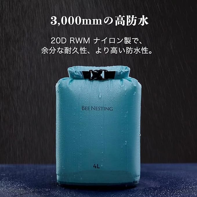 • 5,000mm High Waterproof- This waterproof bag is made from 20D RWM nylon with a smooth siliconized finish, waterproof membrane lining, and PU tape sealing. With a 5,000mm waterhead rating, it offers superior protection from moisture, ensuring your belongings stay dry even in the wettest conditions.