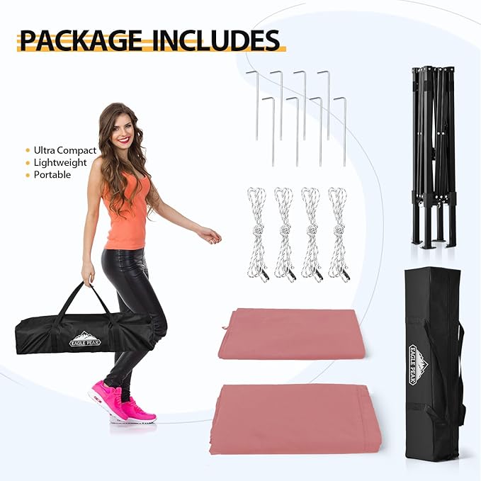 • EASY TO SETUP AND PUT AWAY: The EAGLE PEAK pop up system is more flexible and makes setup easy. The frame glides when opening and closing, enabling one person to easily open and close the canopy .