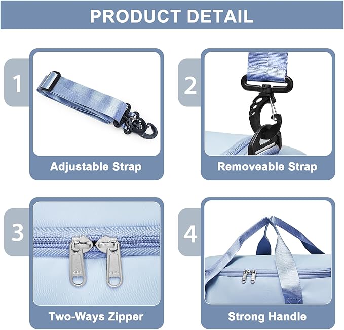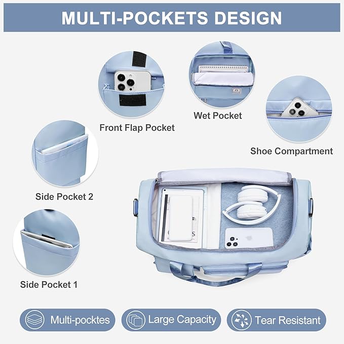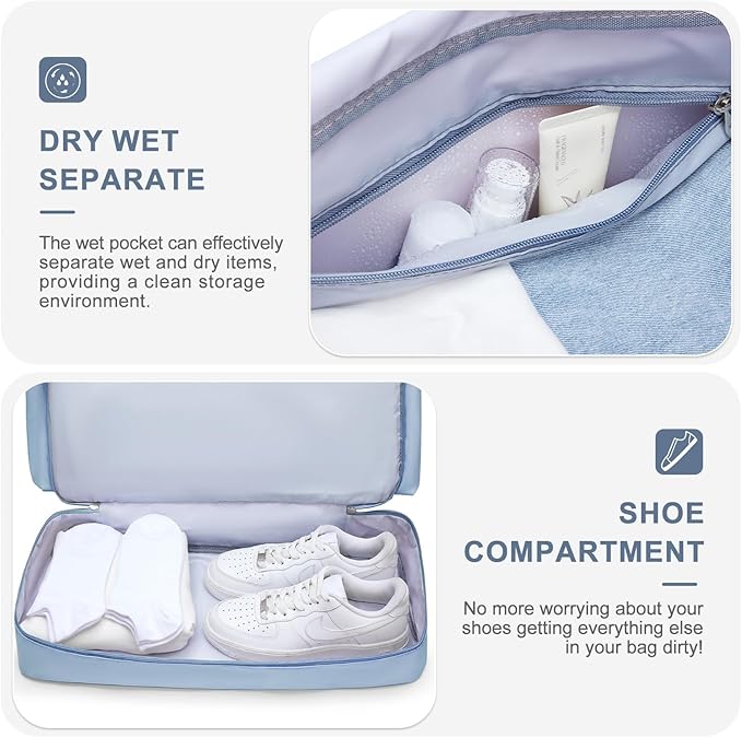 • 【Multifunctional Tote Bag】Our gym bag can be used for various indoor and outdoor activities. It can be used as a dry and wet separate bag, gym bag, dance bag, luggage bag, beach bag, cheer bag, mommy bag, hospital bag, nurse bags, overnight bag, weekender bag, which is the perfect partner for short-distance, travel and air travel.