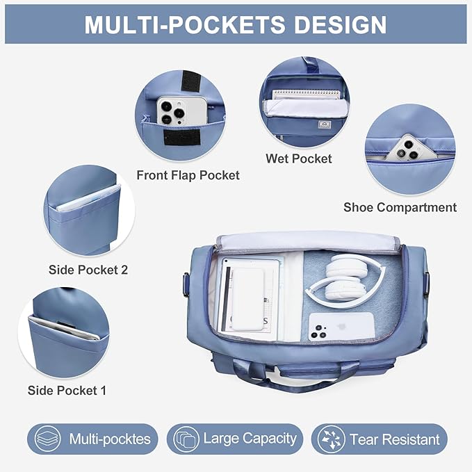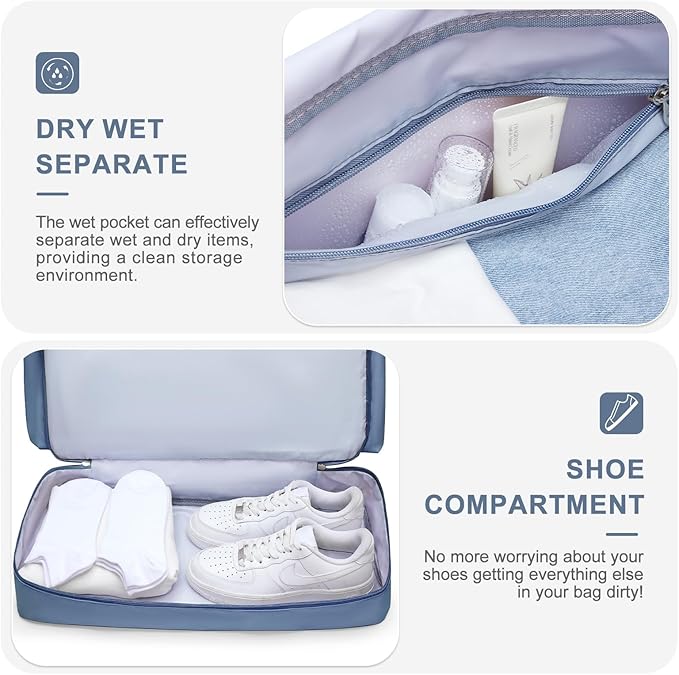 • 【Multifunctional Tote Bag】Our gym bag can be used for various indoor and outdoor activities. It can be used as a dry and wet separate bag, gym bag, dance bag, luggage bag, beach bag, cheer bag, mommy bag, hospital bag, nurse bags, overnight bag, weekender bag, which is the perfect partner for short-distance, travel and air travel.
