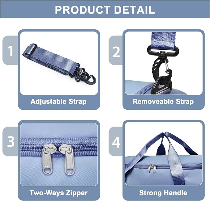 • 【SEPERATE TOILETRY BAG】:1. comes with a toiletry bag 2. comes with adjustable & detachable sling strap and unremovable handles.This is latest upgrade combination weekender travel bag set.