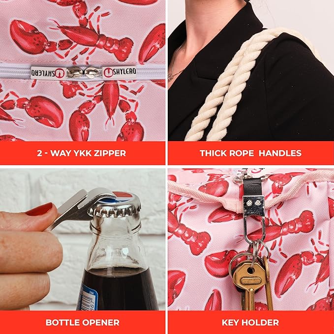 • ROOMY CAPACITY - sized at L22" x H15" x W6", there is plenty of space to securely store your wet beach towels, outfits, lotions, lipstick, cosmetics, magazines, other accessories. Sturdy and comfy rope handles make SHYLERO beach totes tremendous over-the-shoulder handbags for women