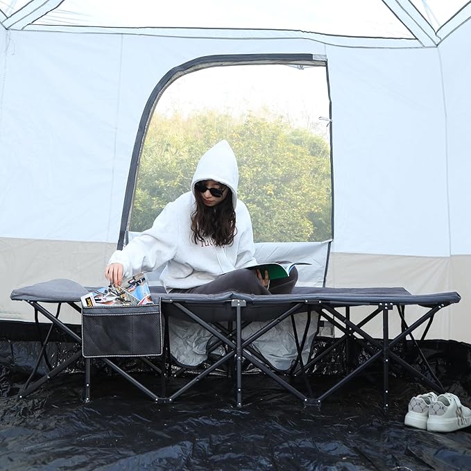 • Versatile Usage: The camping cot weighs only 20lbs. Lightweight to take outdoor. It can not only be used for outdoor, but also can be used as a bed in the house when you need to have a rest or take a nap. Suitable in various occasions like outdoor grass, forest, indoor bedroom, office, or living room.