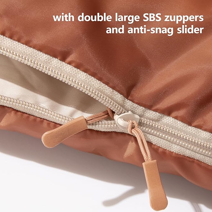 • 【ENJOY THOUGHTFUL DESIGN】We use 190T polyester as the surface material and hollow fiber as the filler. The skin-friendly sponge lining is especially suitable for sensitive skin. This soft, comfortable, skin-friendly, and waterproof sleeping bag can ensure that you can spend a relaxing and pleasant night after a day of camping, walking, hiking, or other exploration.