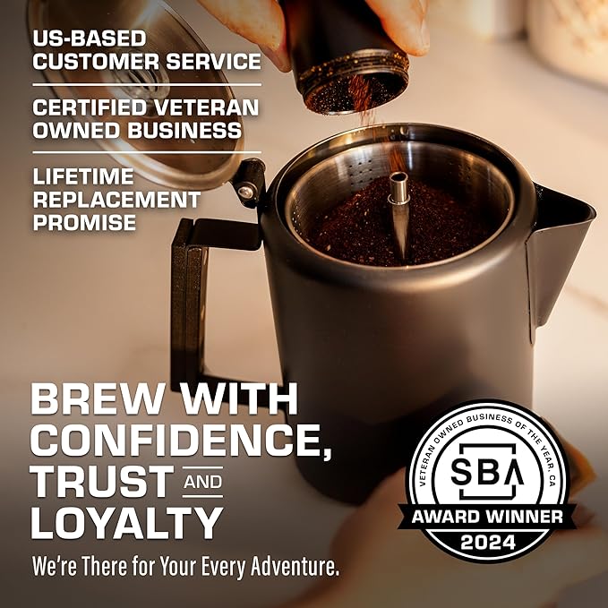 • PROTECTIVE BLACK COATING — We coated an already sturdy & durable percolator to make our sleekest looking coffee maker yet. Brew in style and make your bold camping coffee in something really cool lookin’.