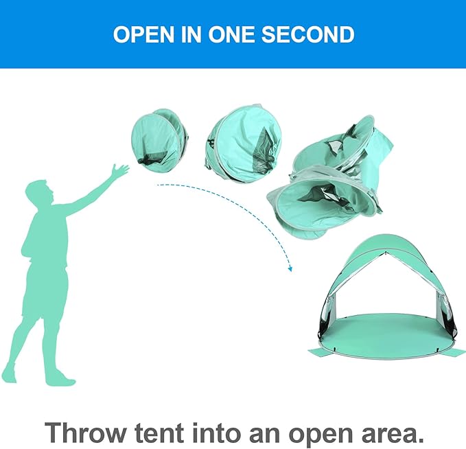 • UPF 50+ & Water Repellent: The water repellent polyester with taped seams keeps the inner shelter dry, and the silver coated tent surface reflects and absorbs sunlight to block up to 98% of the suns harmful ultraviolet rays which protect user from ultraviolet rays.