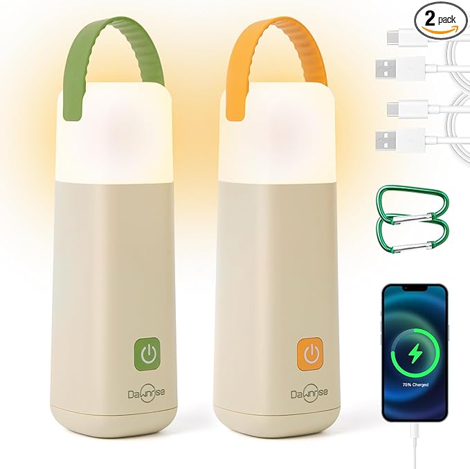 Dawnrise LED Camping Lantern, Up to 350 Hours Rechargeable Camping Light, 4 Modes Outdoor Flashlight Lantern with Red Light, Water Resistant Portable Tent Light for Emergency,Hiking,Hurricane (2PK)