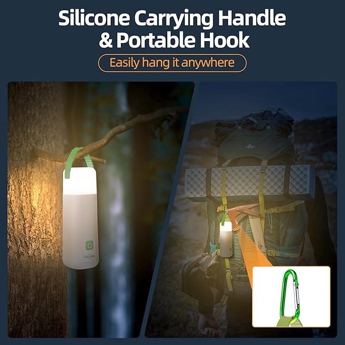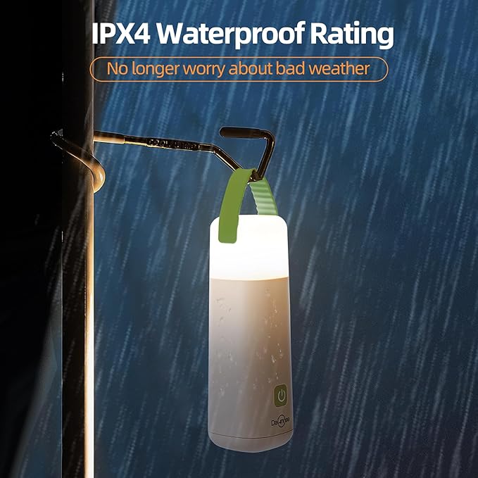 • 【IPX4 Waterproof, Durable Design & Safe Circuit】: This portable led tent light is made with robust materials and soft silicone, capable of withstanding accidental bumps and drops during outdoor adventures. IPX4 waterproof design ensures that this camping lamp can continue to function normally in rain, splashing water and snow. The built-in protection chip intelligently controls the battery's charge and discharge currents, effectively extending the outdoor tent lantern battery's lifespan.