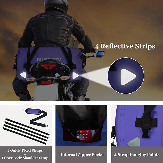 • Safe Design: The motorcycle duffle bag contains a total of 4 high brightness reflectors, which can provide you with good security protection for night travel. Comes with a removable shoulder strap and two side handles, you can carry it by hand or crossbody.