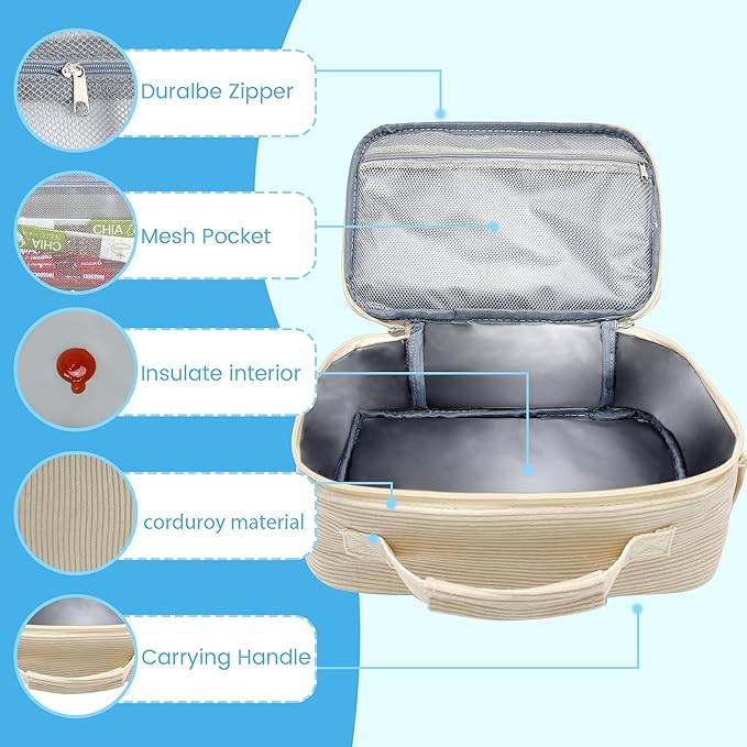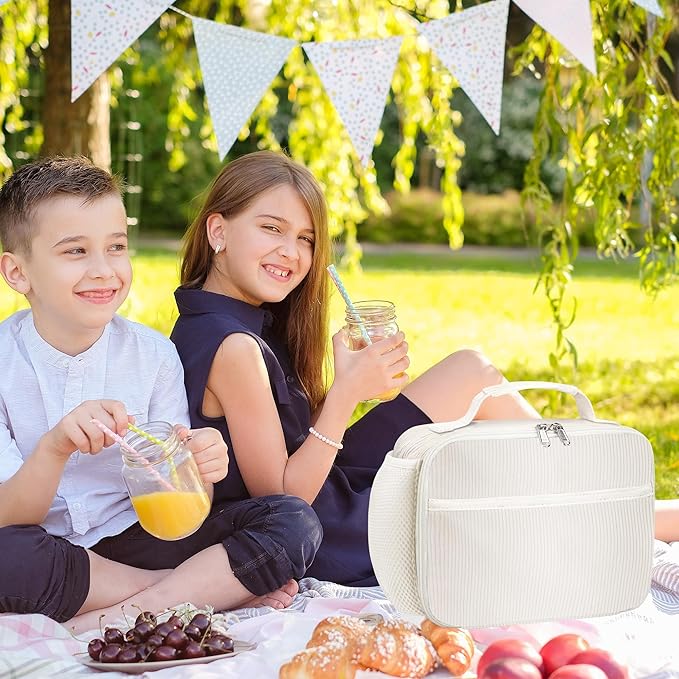 • 【Premium Material】Reusable lunch tote kit for school travel thickened handle and sturdy zippers.When the kids like to carry his bag and play with it a lot, it may be thrown more often, but the lunch bag still holding together.