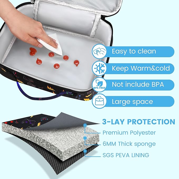 • This boys game insulated lunch bag is uniquely built to meet all your daily lunch, meal prep, or snacking need. With ice pack,insulation helps retain hot and cold temperatures whole day to improve food quality, freshness and taste,keep the meal healthy.