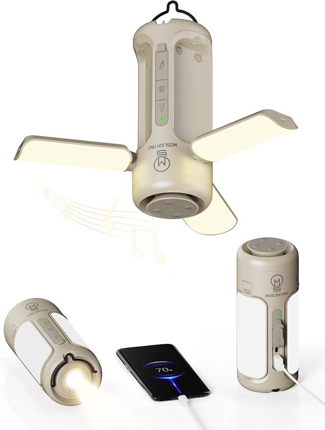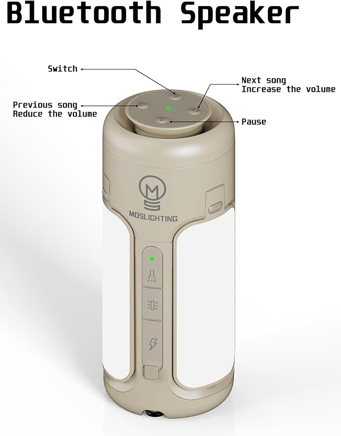 • High Capacity and Rechargeable: MOSLIGHTING Folding camping lantern built-in 10000mAh rechargeable battery with USB outport which support charge your dead phone or device and over 60/30 hours running time in lowest brightness / Bluetooth Speaker.