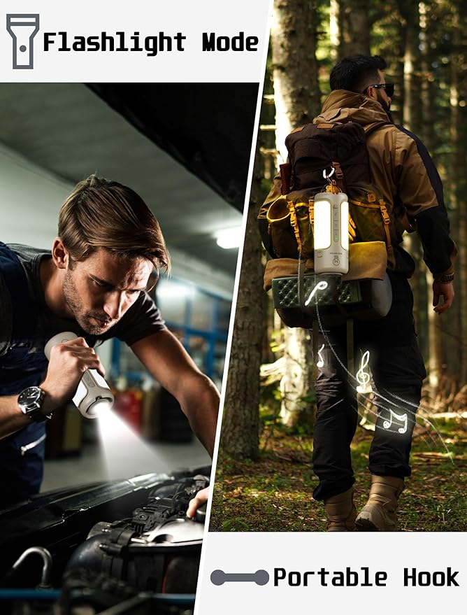 Rechargeable Camping Lantern with Bluetooth Speaker, 10000mAh, Portable LED Flashlight, Folding Lanterns, IP54 Waterproof, 4 Mode Stepless dimming, Power Outage Lantern for Home