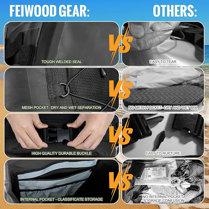 • 【AFTER-SALES SERVICE】FEIWOOD GEAR team is committed to providing superb products and services for every customer. We would do whatever it costs to achieve your satisfaction. If you are not satisfied with our dry bag, just contact us without any hesitation. We will solve all your problems and confusions the first time.