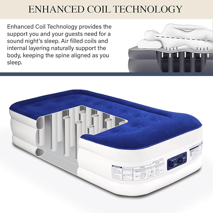 • King Koil's Patented Ultra-Fast High-Speed Pump Technology: Experience rapid inflation with our state-of-the-art high-speed pump, engineered to inflate your twin airbed fully in under 90 seconds. Dedicated inflate/deflate controls ensure effortless setup and takedown.