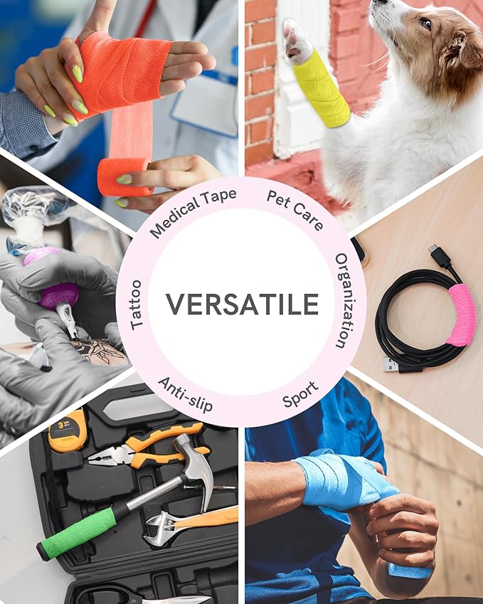• Fluorescent Colors: Experience the vibrancy of our bandages in Fluorescent Yellow, Purple, Pink, Blue, Green, and Orange. These vivid colors add a lively touch to your medical supplies, making bandage identification quick and easy, perfect for people or pets.