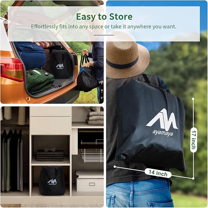 • Compact and Portable: This air mattress combines practicality with comfort. It easily folds down into a compact size (17 x 14 x 5 inches) for streamlined storage and transportation,and comes with a travel carry bag. Ideal for camping,road trips,or hosting guests,its portable design ensures you can bring comfort wherever you go.
