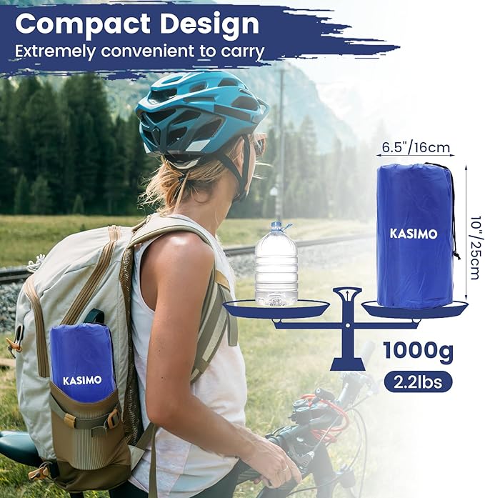 • 🌜6" Thickness & Ultra Wide Camping Sleeping Pad🌛 KASIMO sleeping mat could inflate to size 79" X 26" X 6", wider and thicker than other camping sleeping mat on the market. It could keep your body away from the uneven ground and hard rocks, ensuring maximum comfort, give you the newest experience, great camping essentials