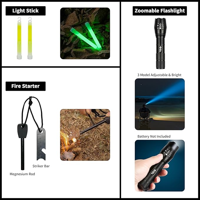 • Included Components : 100+ First Aid Supplies, 20+ High Quality Survival Essentials