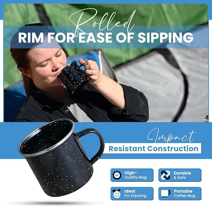 • 12-CUP CAPACITY WITH 2 CUPS AND COFFEE FILTERS INCLUDED: Brew up to 12 cups of coffee, ideal for groups or family. The set includes two enamel cups and 12 coffee filters, making it ideal for sharing coffee during your outdoor adventures.