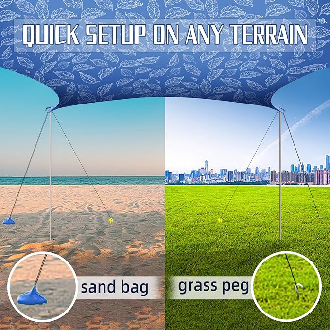 • Adjustable Family Sun Shade: With a size large enough to comfortably accommodate 4 to 8 people. Stay cool and protected from the sun with our adjustable beach sun shade. Easily move the sandbag or adjust the poles to change the angle of the shade and get the perfect shade tents for outdoors