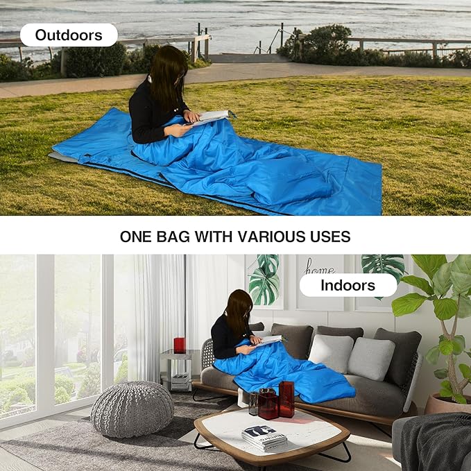 • Ultralight and Softer: Size is 86.6" x 63"/ 220cm x 160cm. Weight of 4.2lbs. Perfect lightweight sleeping bags for 2 people or a couple camping and travelling. High-quality and durable fabric, stands up to years of use.