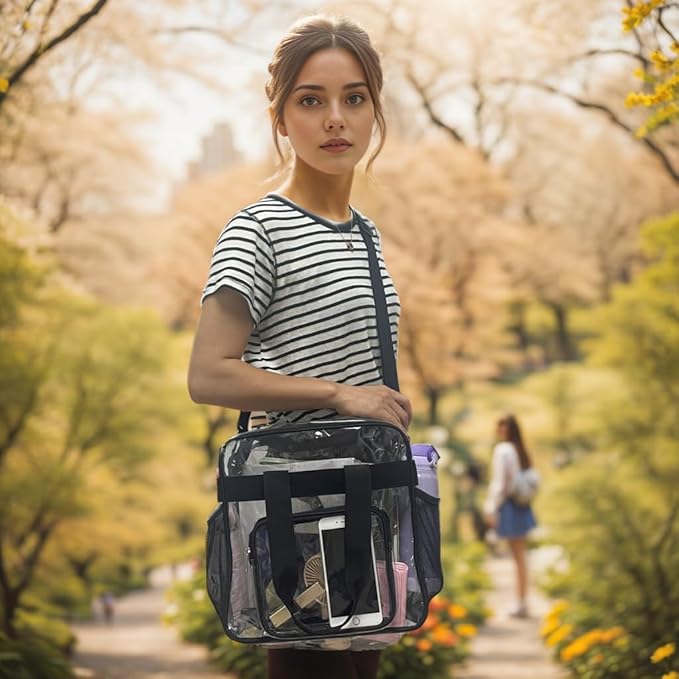 • Multiple Carrying Options: The clear purse features 2 handles and a removable adjustable crossbody strap, offering versatility in how it can be carried for comfort and convenience.