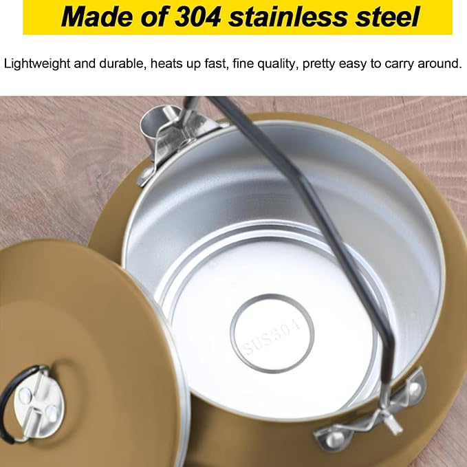• 【FAST HEATING】Our camping kettle can be used on open fire and induction cooker. Metal bottom with high thermal conductivity for more uniform heating, camping kettles for boiling water, only about 3 to 5 minutes later, you can enjoy your steaming hot cup of coffee or tea.