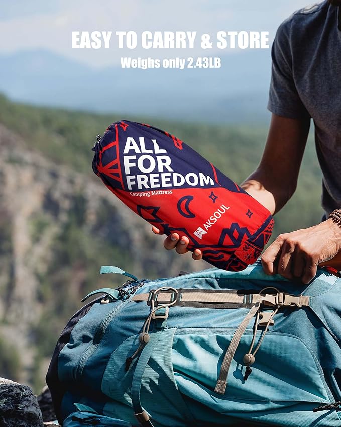 • 【Compact & Lightweight】: after folding and storing, the camping mat weighs only 2.43lb, size 10.24‘’L * 6.3‘’ W* 3.94‘’Th, designed with portability in mind, our self-inflating sleeping pad is ultralight and portable, making it perfect for backpacking trips or car camping adventures. Say goodbye to bulky and heavy camping pad without sacrificing comfort