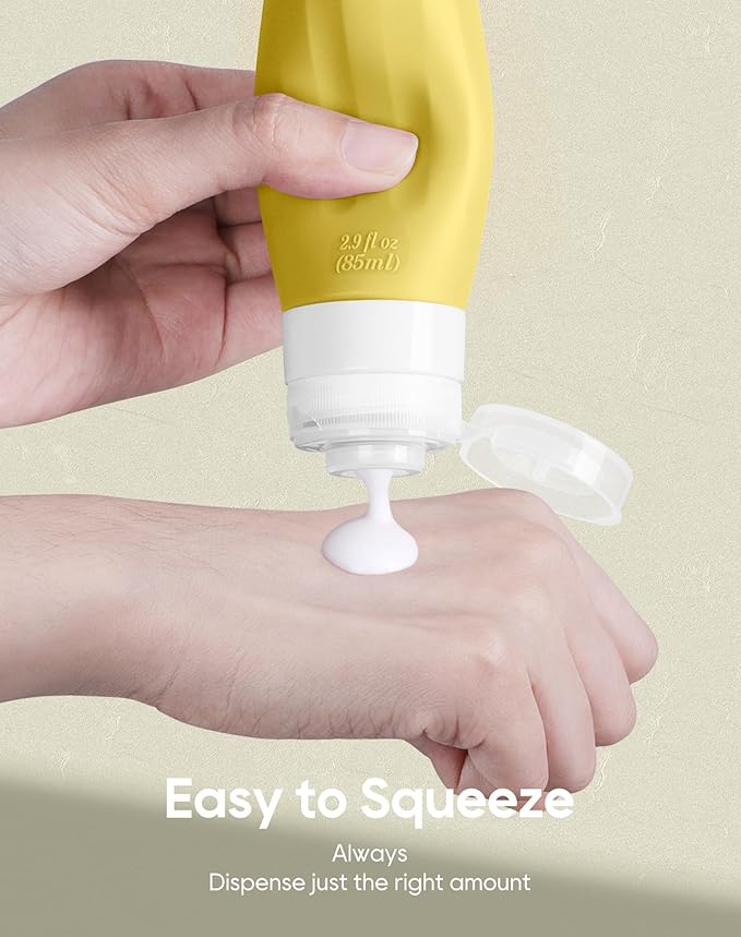 • SAFE SILICONE MATERIAL: Made of Food Grade BPA Free Silicone, this travel set is sturdy, soft, squeezable, flexible and reusable. Safe material guarantee that you can not only use them to store shampoo, conditioner, face soap, sunscreen, creams, lotion or etc, but also safe for food, various seasonings. Soft silicone body make you squeeze out contents easily