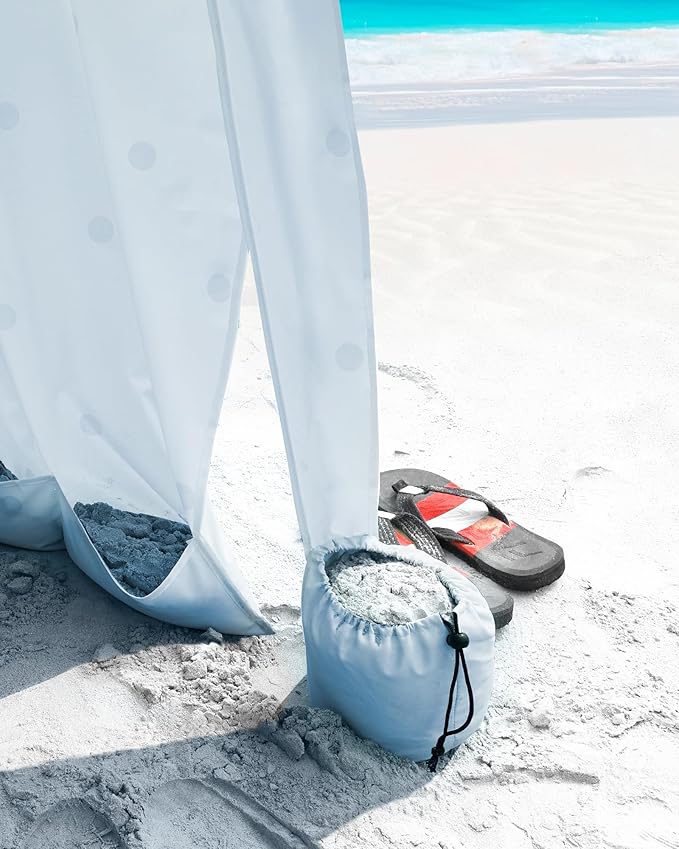• Stable Beach Cabana with Sandbags: Sturdy and durable fiberglass structure holds the roof. Comes with 4 stakes and built-in sandbags at each corner to keep the beach umbrella firmly anchored on sand, grass, or other surfaces.